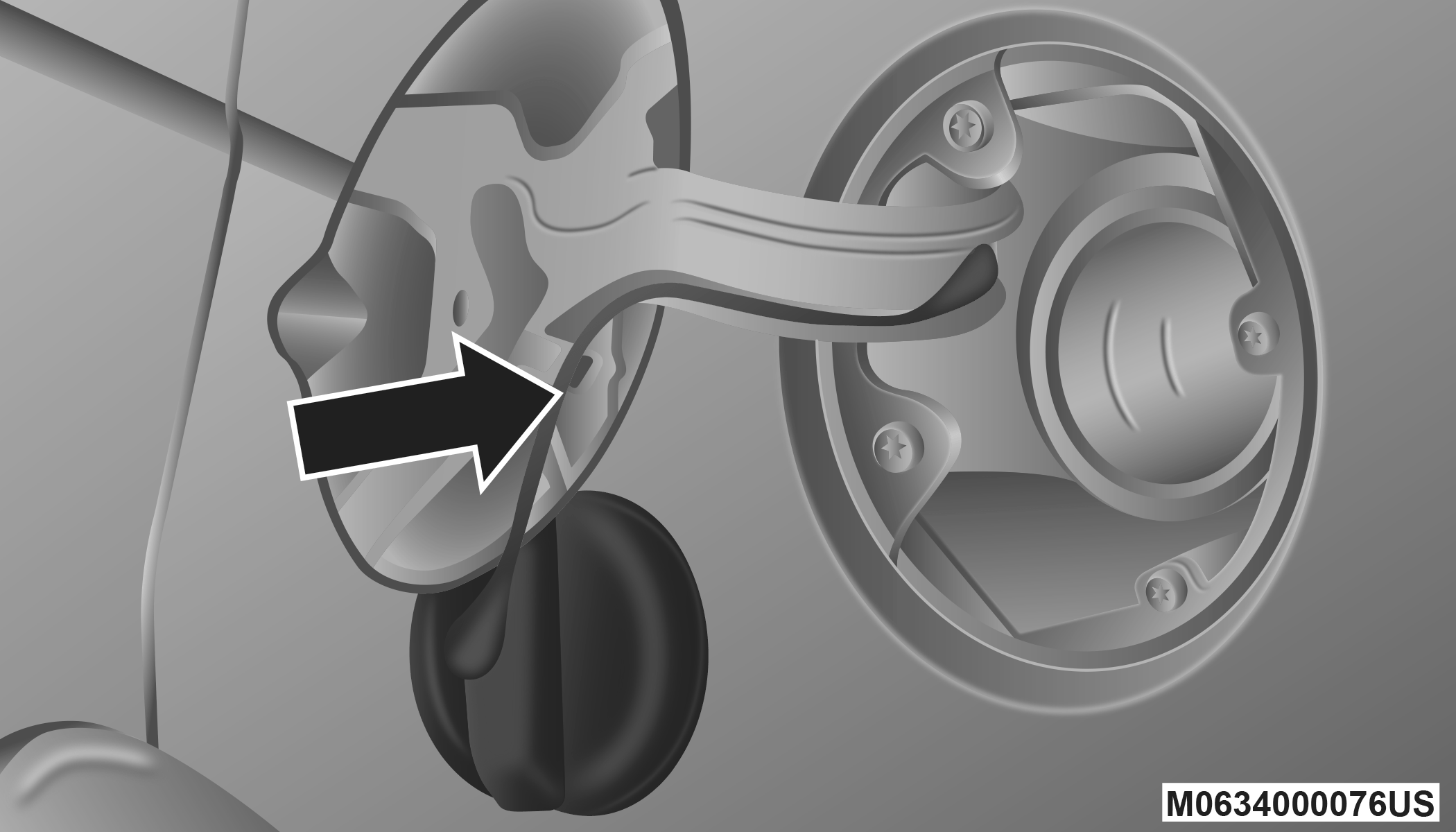 When removing the fuel filler cap, lay the cap tether in the hook, located on the fuel filler door reinforcement.