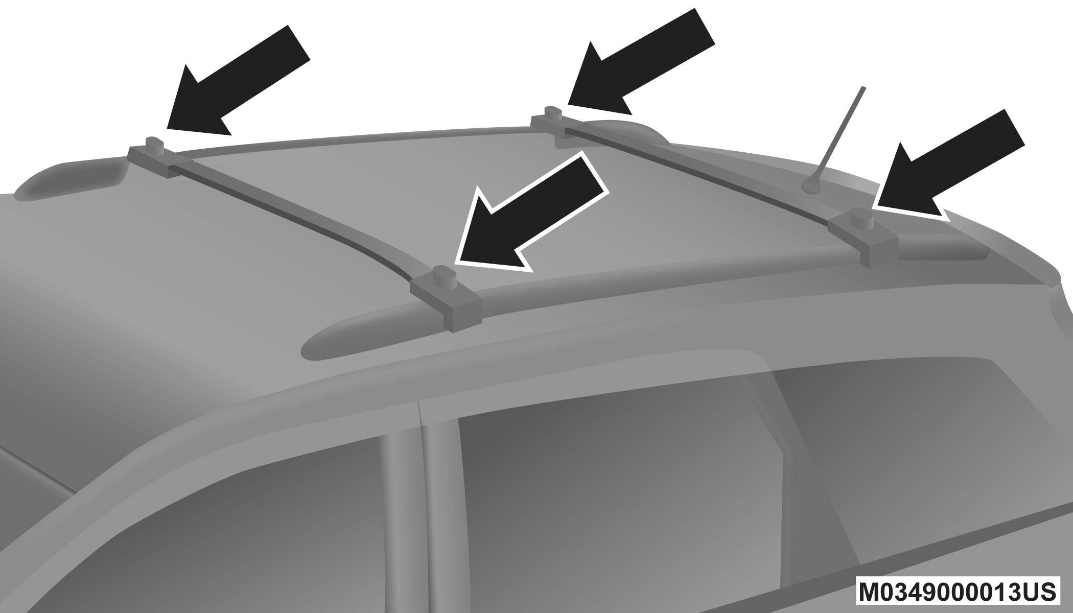 To help control wind noise when installing the crossbars, make sure the arrows marked on the underside of the crossbars face the front of the vehicle.