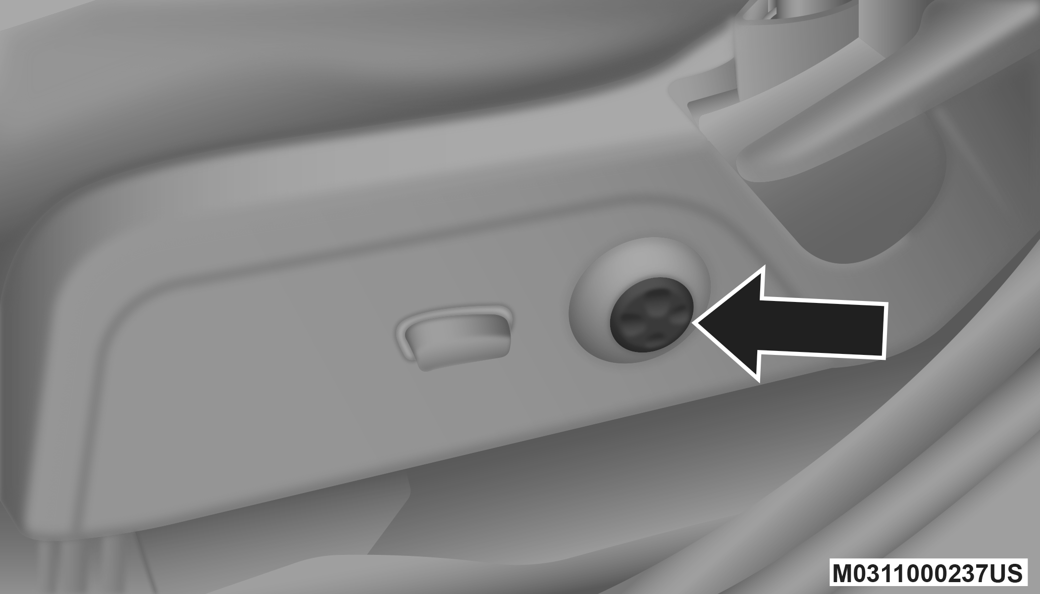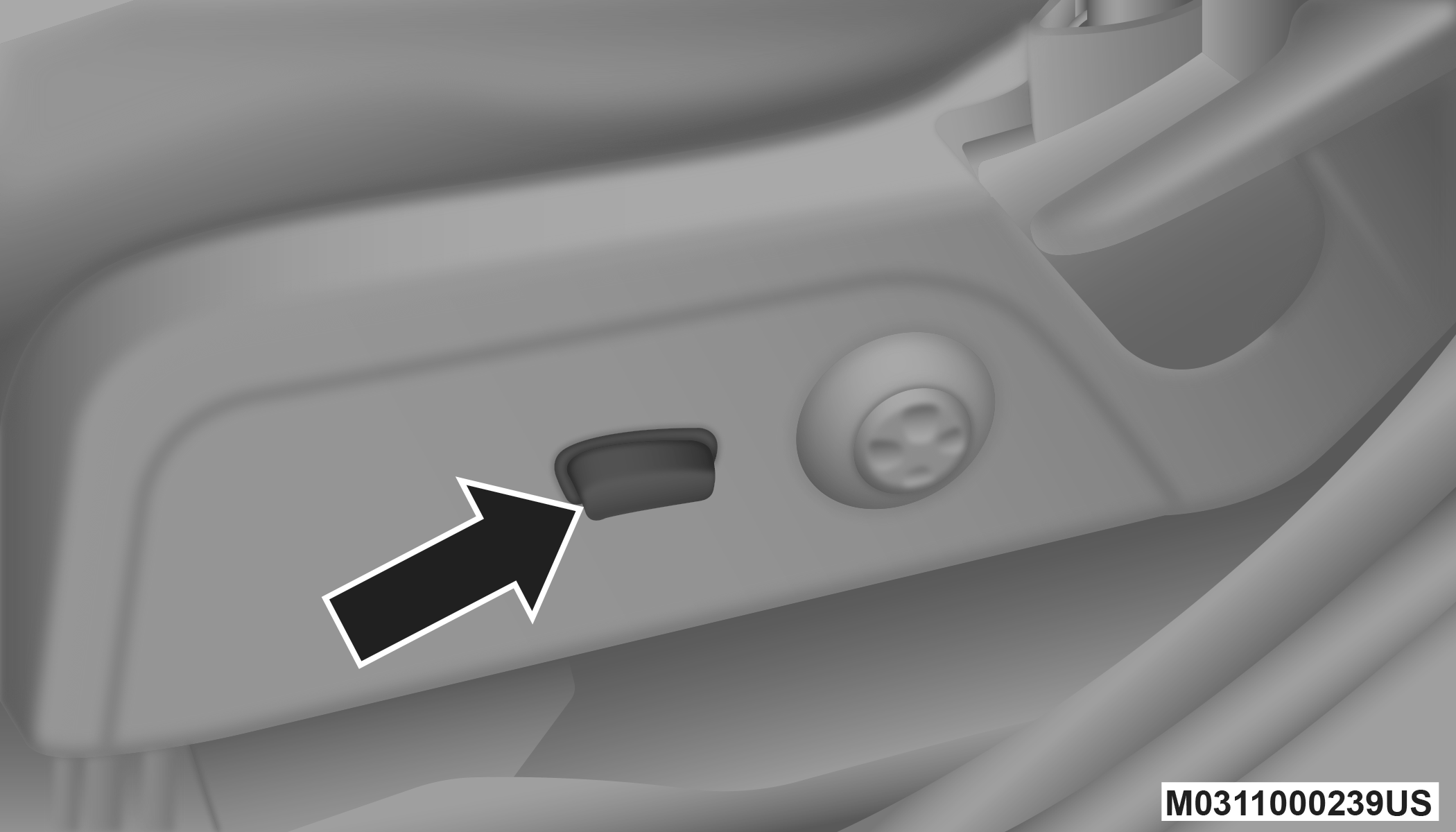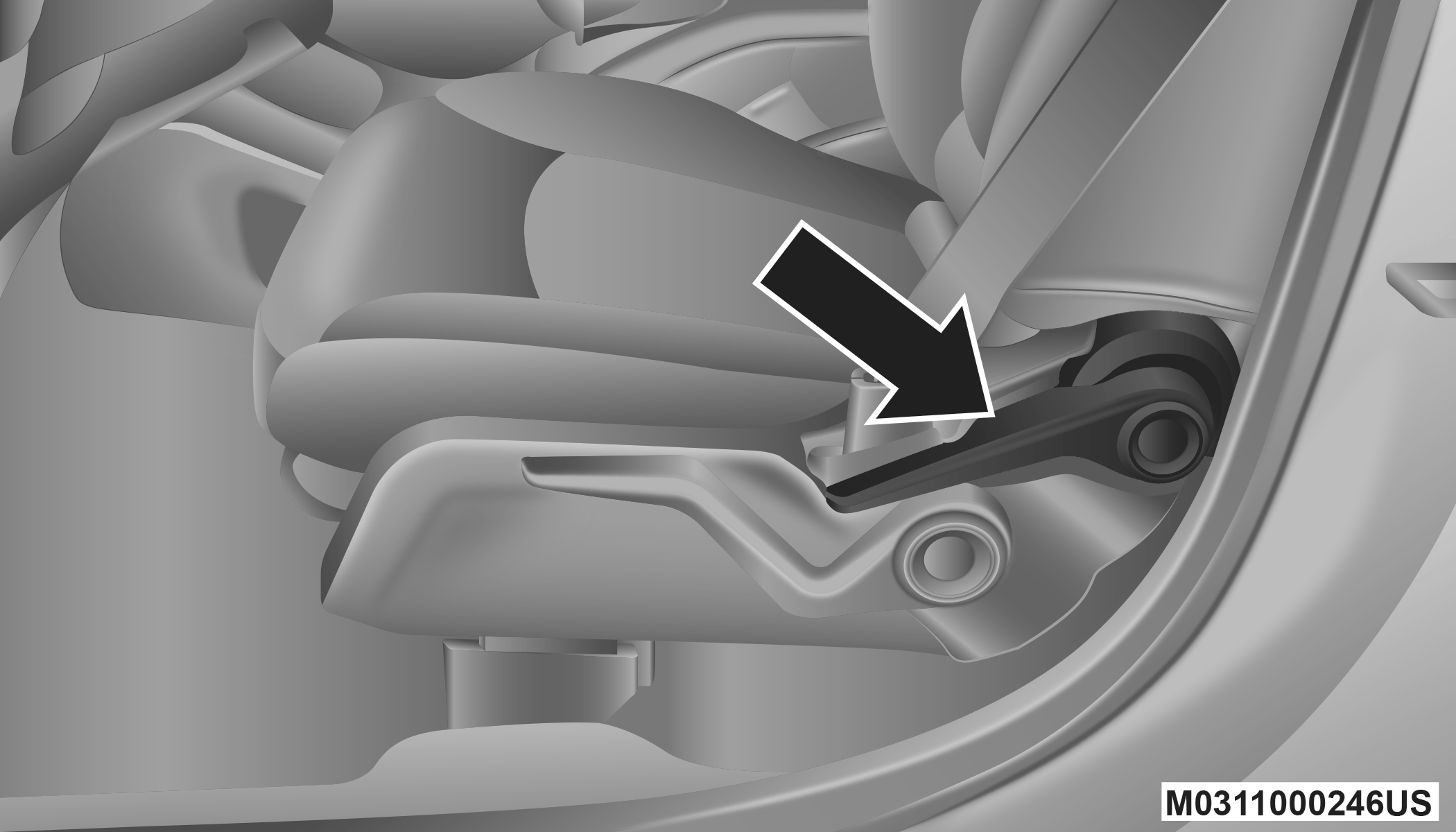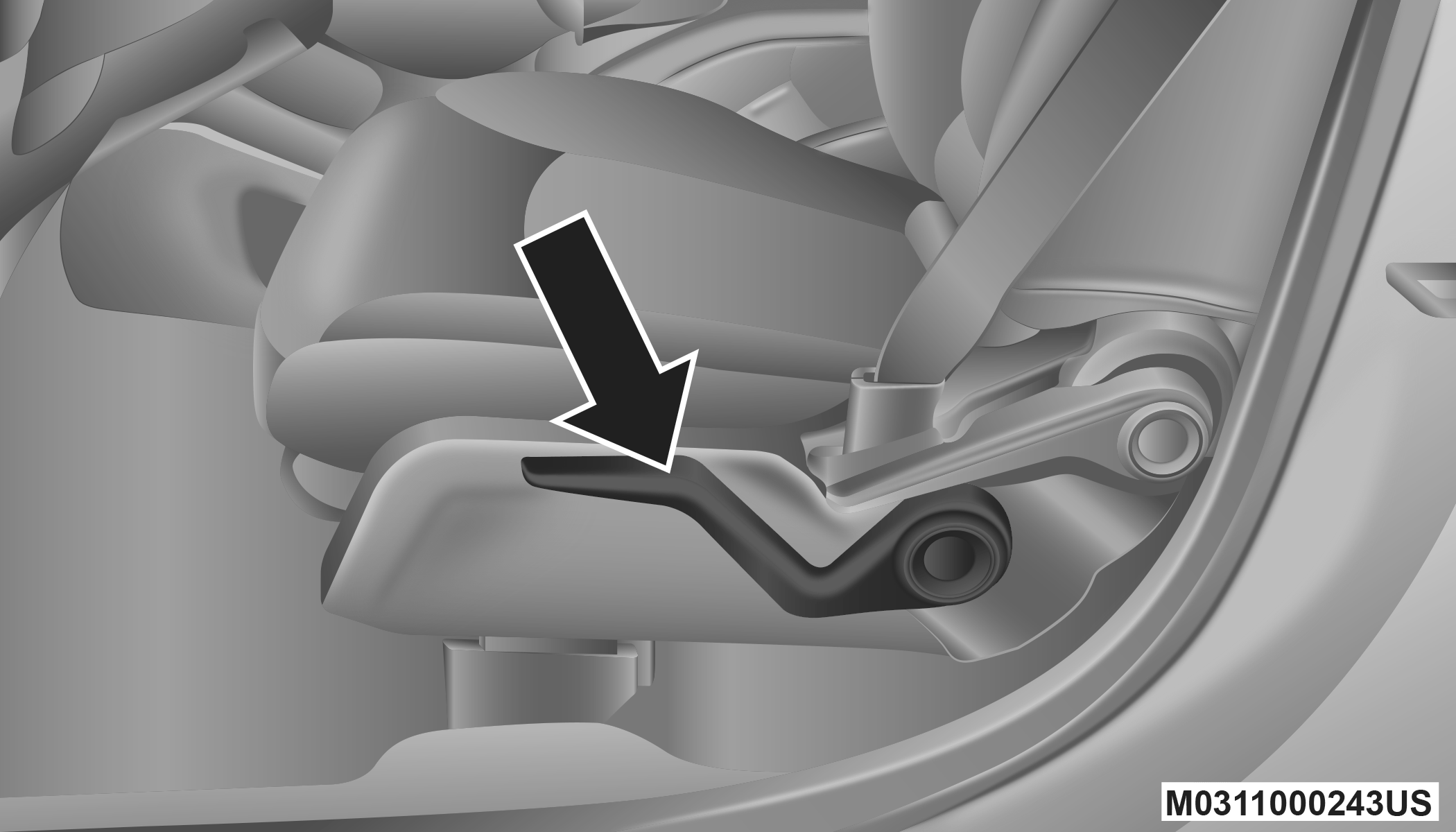 For models equipped with manual seats, the driver and passenger seats can be adjusted forward or rearward by using a bar located by the front of the seat cushion, near the floor.