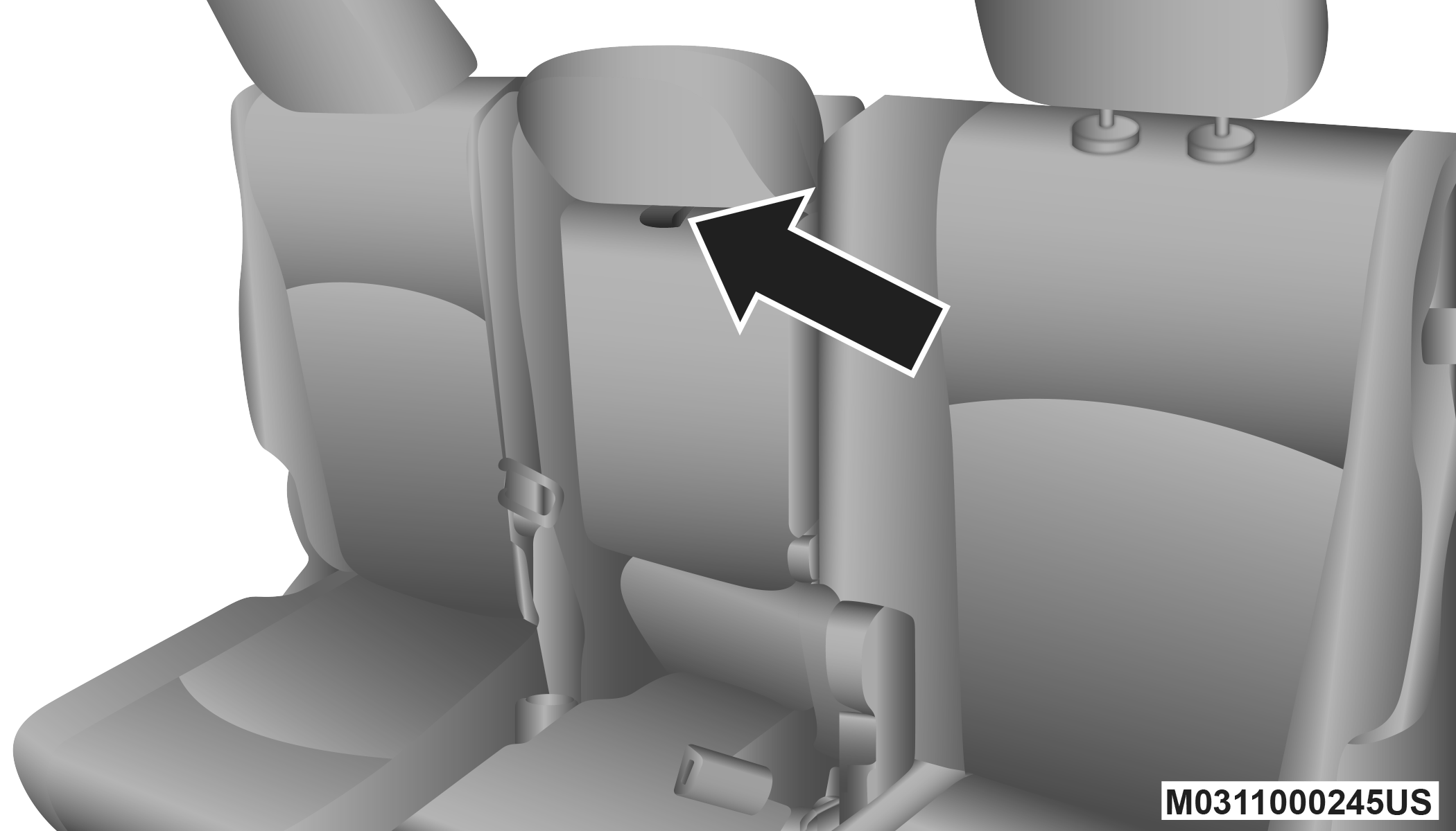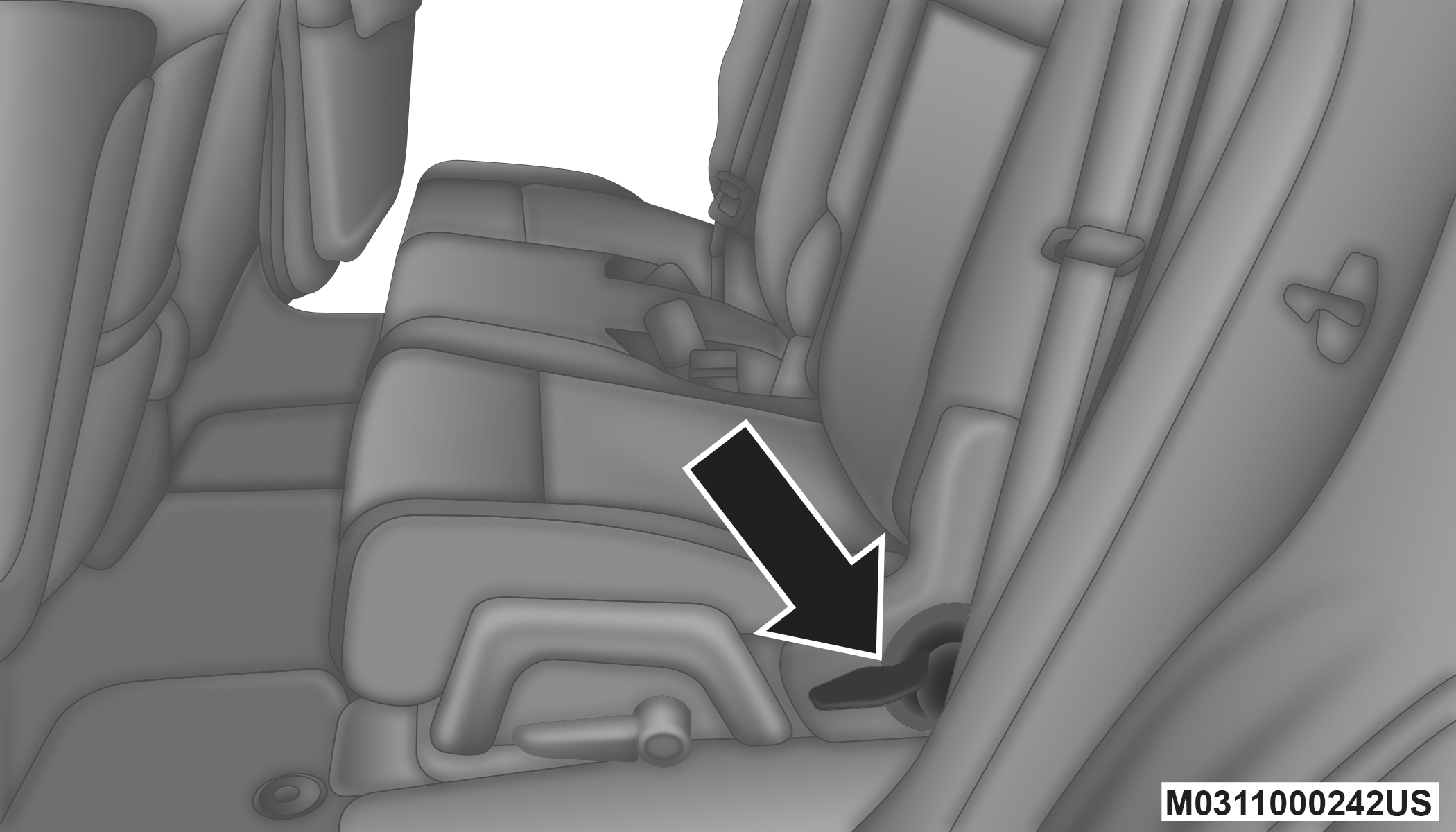 Keep the latch clean and free of objects and be certain that the seatback/armrest is locked securely into position. Otherwise, the seat will not provide the proper stability for child seats and/or passengers. An improperly latched seat could cause serious injury.