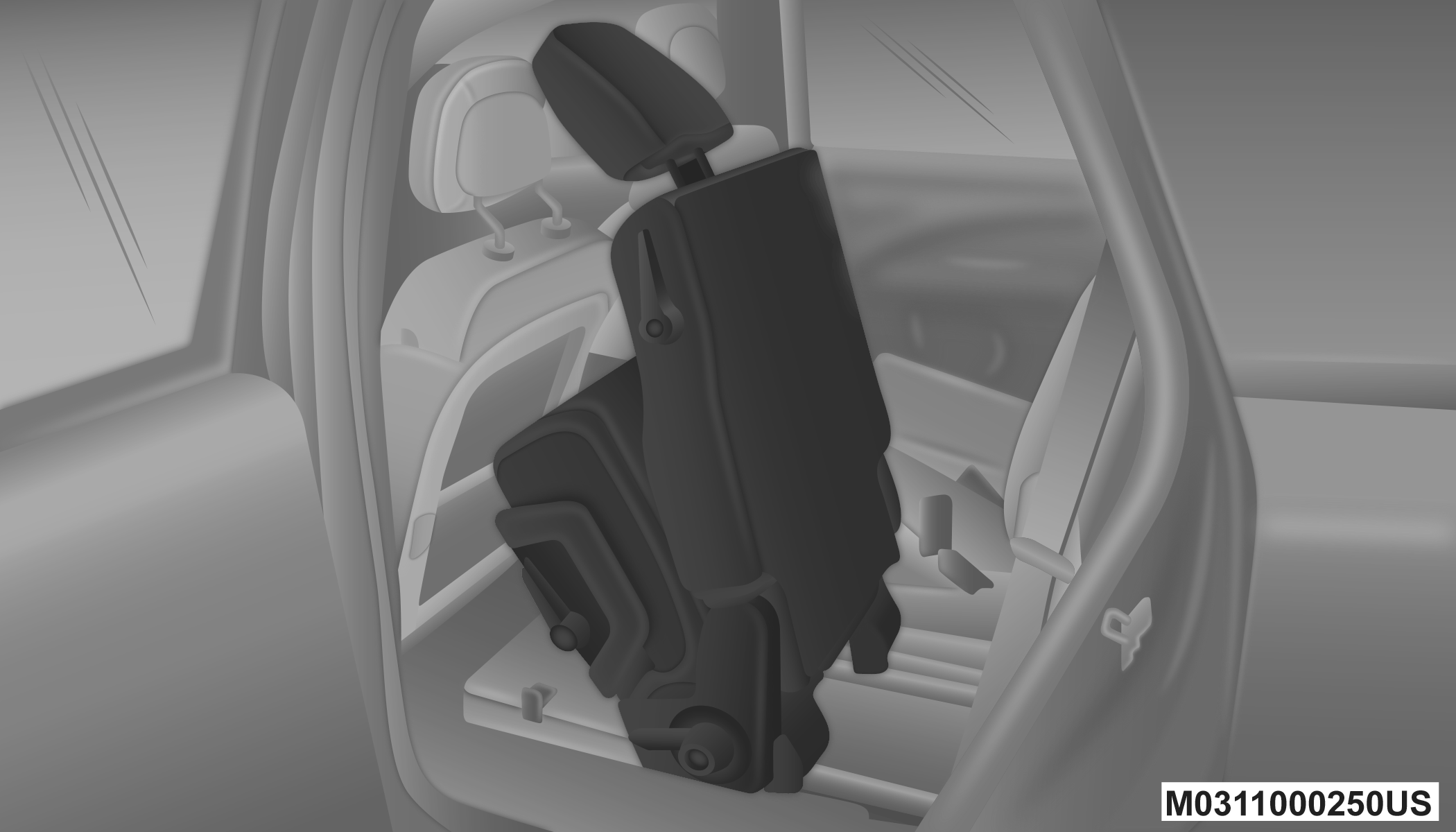Prior to folding the second-row passenger seat, make sure the front seatback is not in a reclined position. This will allow the second-row seat to fold easily.