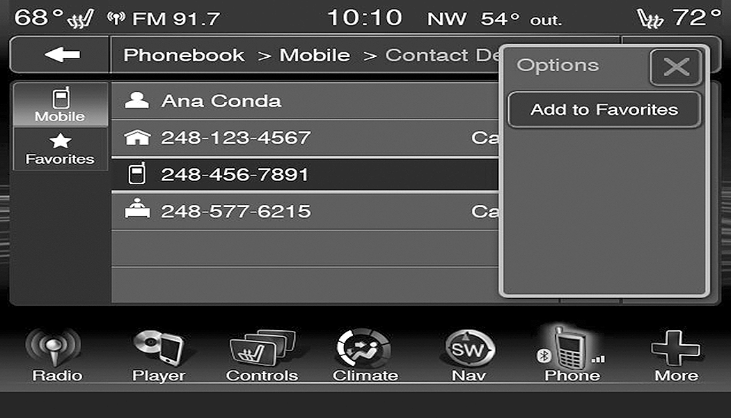 When selected, the radio tunes to the station stored in the Presets and returns to the main radio screen.