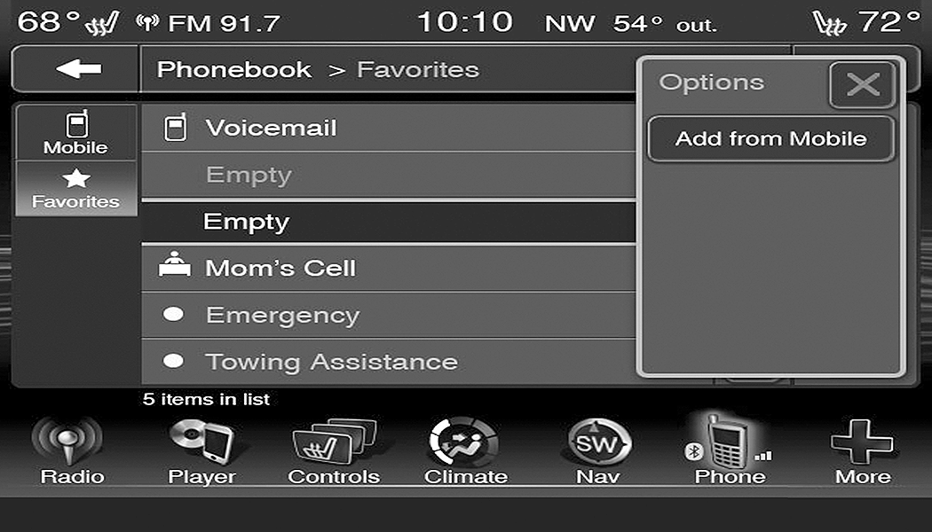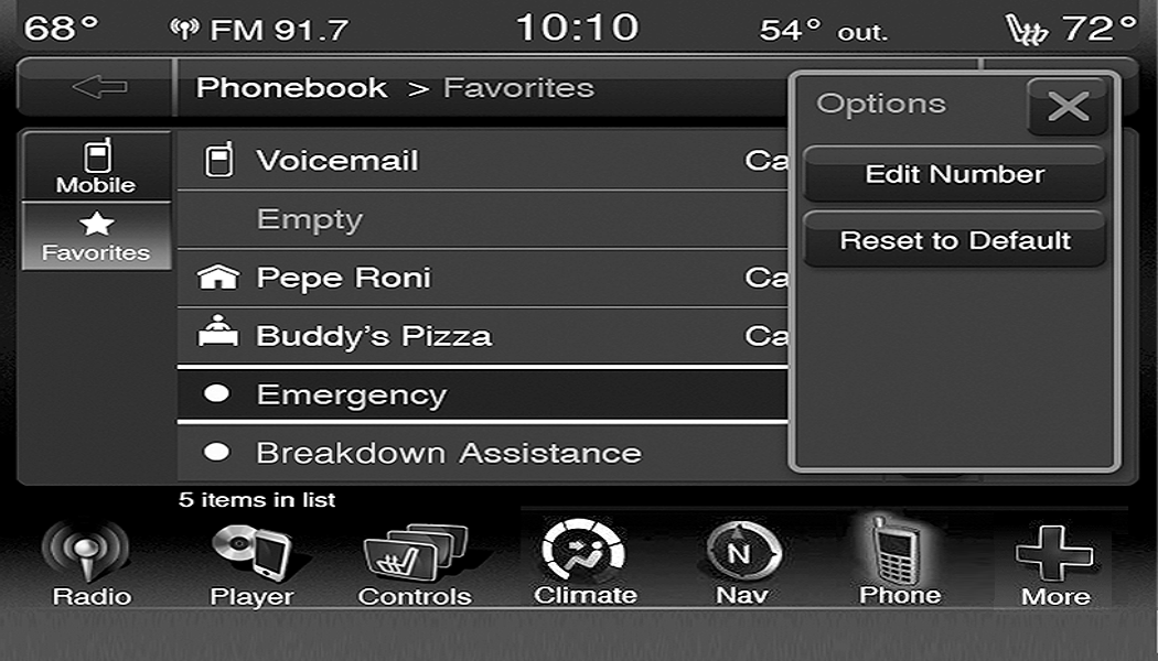 When in either AM or FM, the Browse Screen provides a means to edit the Presets List and is entered by pressing the Browse button on the touchscreen.