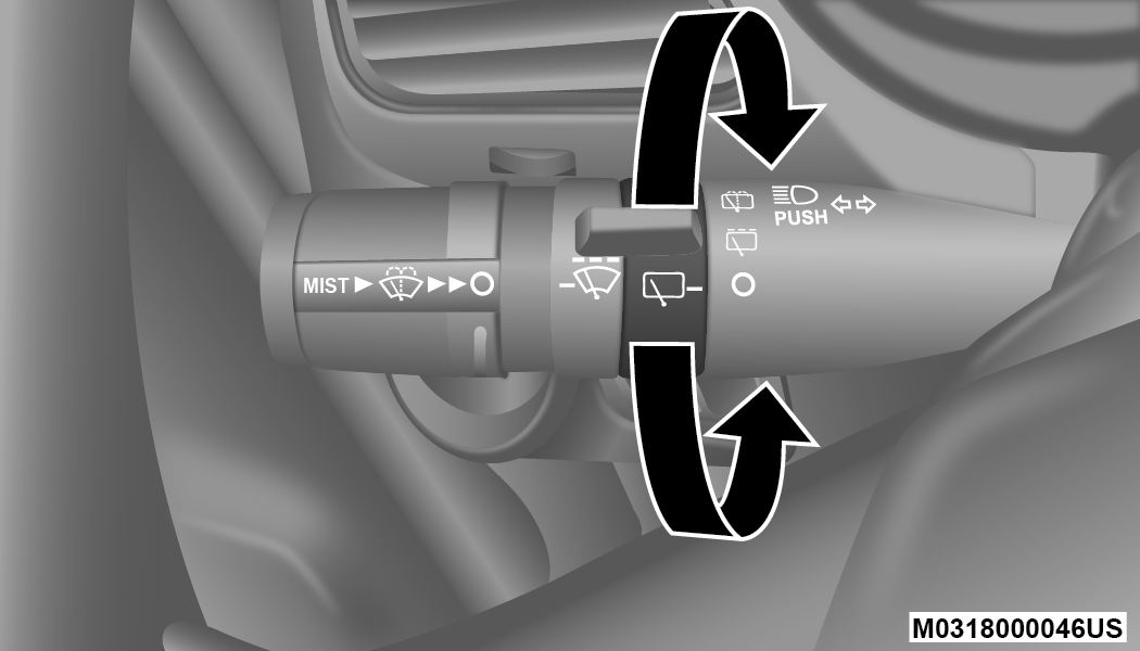 Rotate the switch upward to the first detent position for rear wiper operation.