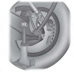 the parking brake and use an appropriate block or wheel chock to secure the wheel diagonally opposite to the wheel being changed. For example, when changing the front left wheel, place an appropriate block or wheel chock on the right rear wheel.