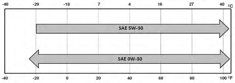 The use of correct oil viscosities for diesel engines is important for satisfactory operation. Determine which oil viscosity best suits the temperature range you expect to encounter for the next service interval from the following SAE viscosity grade chart.