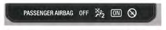The front passenger airbag on and off switch has indicators that illuminate, indicating that the front passenger frontal airbag is either on or off. The indicator lamp is near the center of the instrument panel.