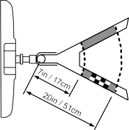 Use the supplied measurement card, a tape measure and pen to carefully mark the area where to attach the sticker. The sticker is supplied in the back cover pocket of your quick start guide. Make sure the entire sticker is within the gray zone between the two arcs or distance markers on the diagram, and is also visible in the rear view camera display. It should be between 7–20 in (17–51 cm) from the trailer ball hitch.