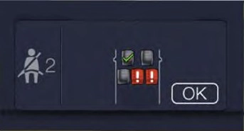 Note: Front seating positions appear in this warning display. Warnings for unfastened front seatbelt buckles appear in the initial warning lamp.