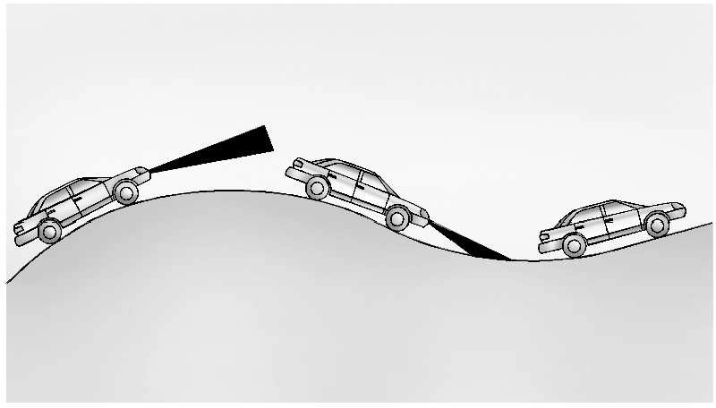 How well the cruise control works on hills depends on the vehicle speed, the load, and the steepness of the hills. When going up steep hills, pressing the accelerator pedal may be necessary to maintain vehicle speed.
