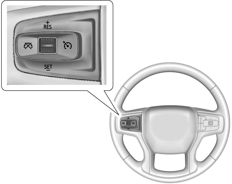 The cruise control indicator on the instrument cluster turns green after cruise control has been set to the desired speed. See Instrument Cluster 0 105.