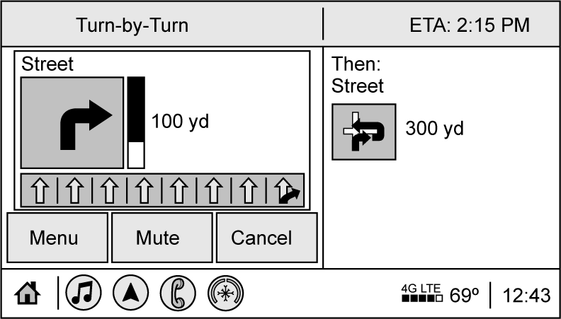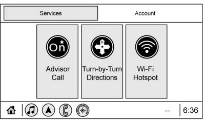 Touch OnStar Services on the Home Page to access the OnStar menu. Touch Turn-by-Turn Directions icon while on the Services tab of the OnStar menu.