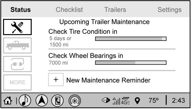Touch to view a list of maintenance reminders for the Trailer Profile.