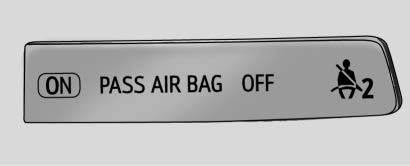 will light either ON or OFF, or either the on or off symbol, to let you know the status of the front outboard passenger frontal airbag.