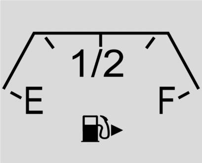 When the ignition is on, the fuel gauge indicates about how much fuel is left in the tank.
