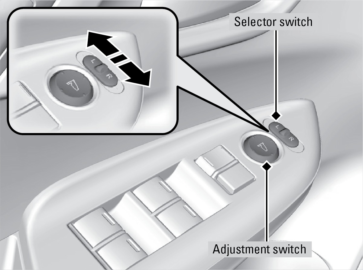 L/R selector switch: Select the left or right mirror. After adjusting the mirror, return the switch to the center position.