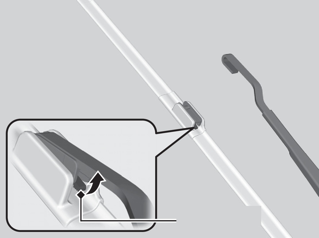 Press and hold the tab, then slide the blade holder off the wiper arm.