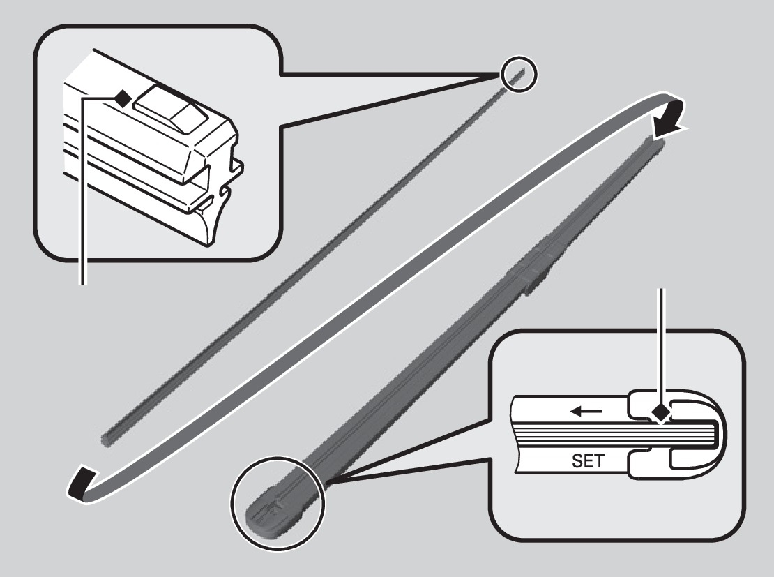 Slide the new wiper blade onto the holder. Make sure it is engaged correctly, then install the wiper blade assembly onto the wiper arm.