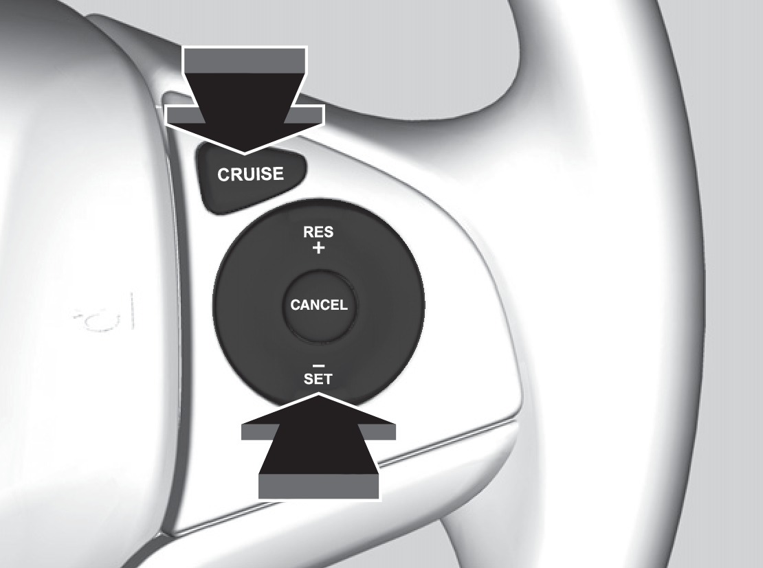 - Press the CRUISE button. The CRUISE MAIN indicator appears.