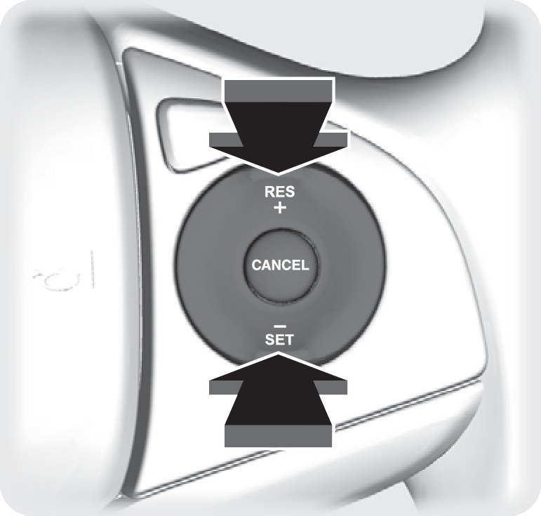 Each time you press the button, the vehicle speed is increased or decreased by about 1 mph (1.6 km/h). If you keep the button pressed, the vehicle speed increases or decreases until you release it.