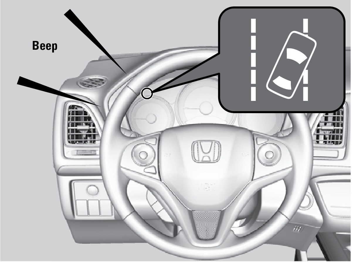 If you cross a detected lane line without using your turn signal, the LDW indicator blinks and a beep sounds.