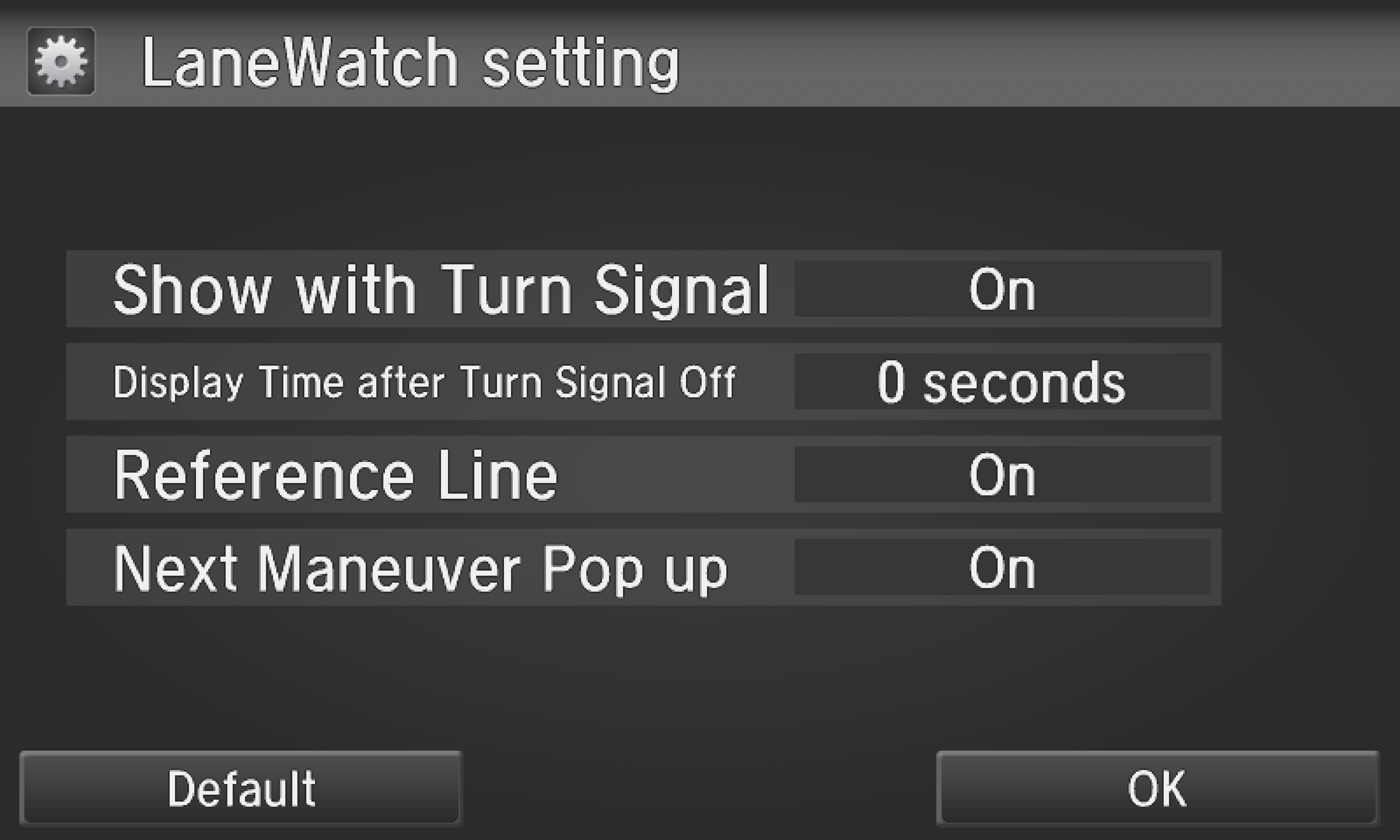 You can also press the LaneWatch button on the end of the turn signal switch to view a constant real-time display. Press it again to turn the display off.