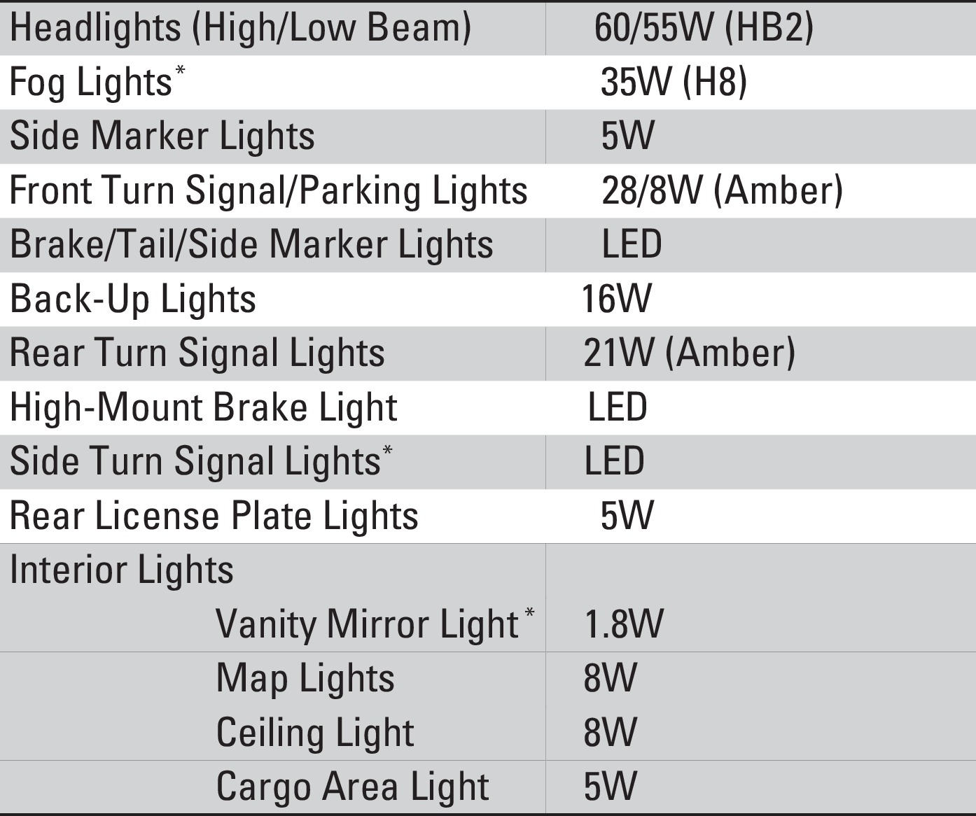 2018 Honda HR-V Owners Manual - Light Bulbs
