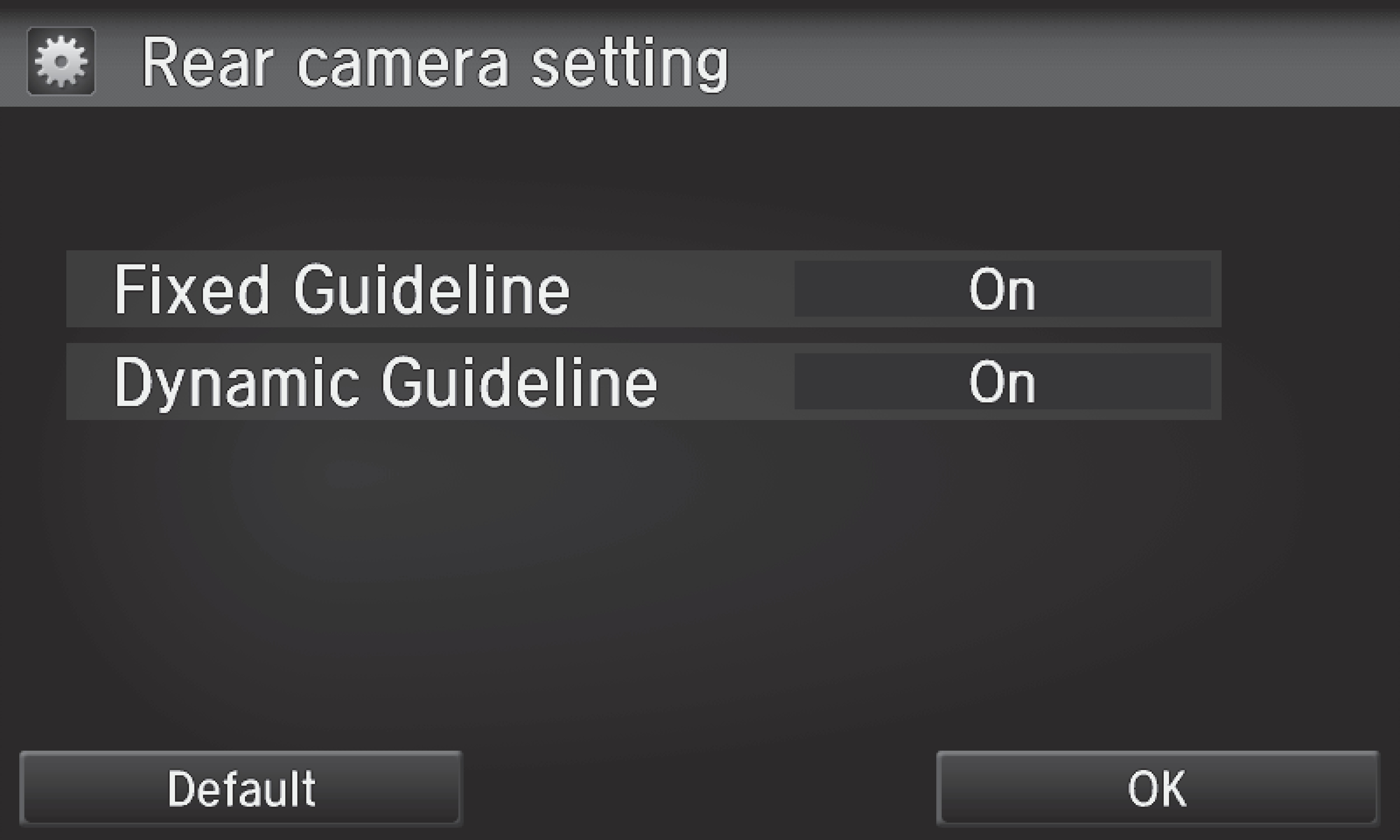 Dynamic Guideline: Guidelines move as you turn the steering wheel. Select On or Off.
