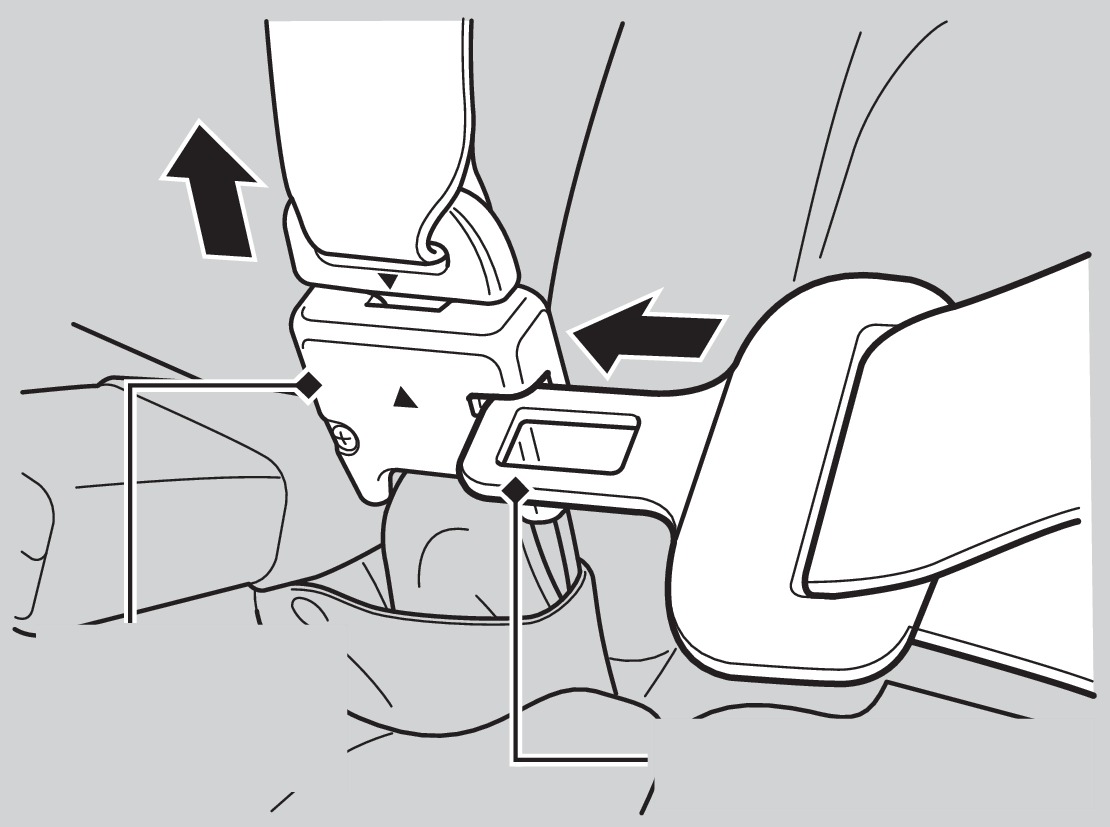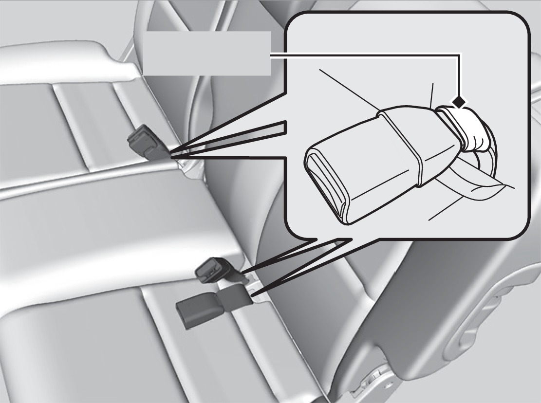 - Store the center seat belt. Insert the latch plate into the slot on the side of the anchor buckle. Retract the seat belt into the holder on the ceiling (see "Seat Belts").