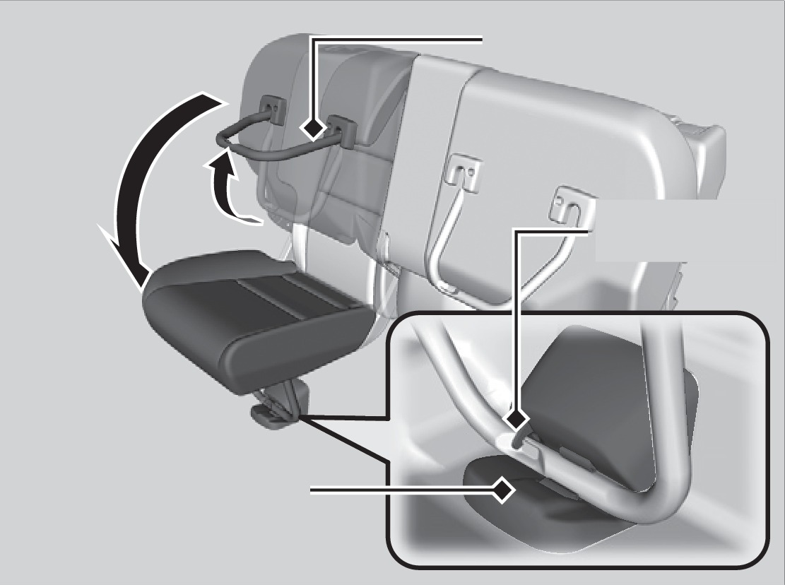 To return the seat to its original position, hold the seat cushion in the upright position, and pull up the seat leg fully. Slowly put down the seat cushion and set the seat leg in the floor guide.