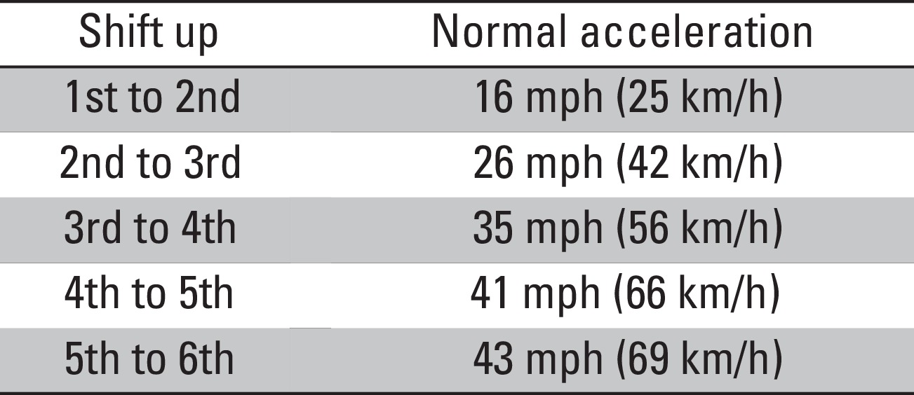 Before downshifting, make sure the engine will not go into the tachometer's red zone. This can severely damage your engine.