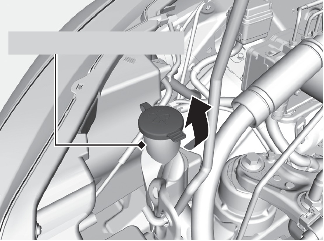 If the washer fluid level is low, fill the washer reservoir. Pour the washer fluid carefully. Do not overflow the reservoir.