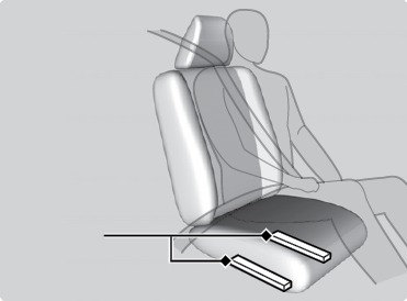 Two side airbags, one for the driver and one for the front passenger. The airbags are stored in the outer edges of the seat-backs. Both are marked SIDE AIRBAG. |