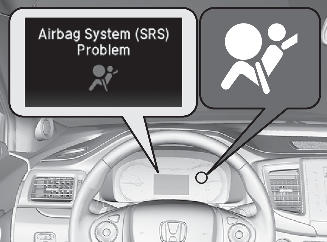 If a problem occurs in the airbag system, the SRS indicator comes on and a message appears on the multi-information display.