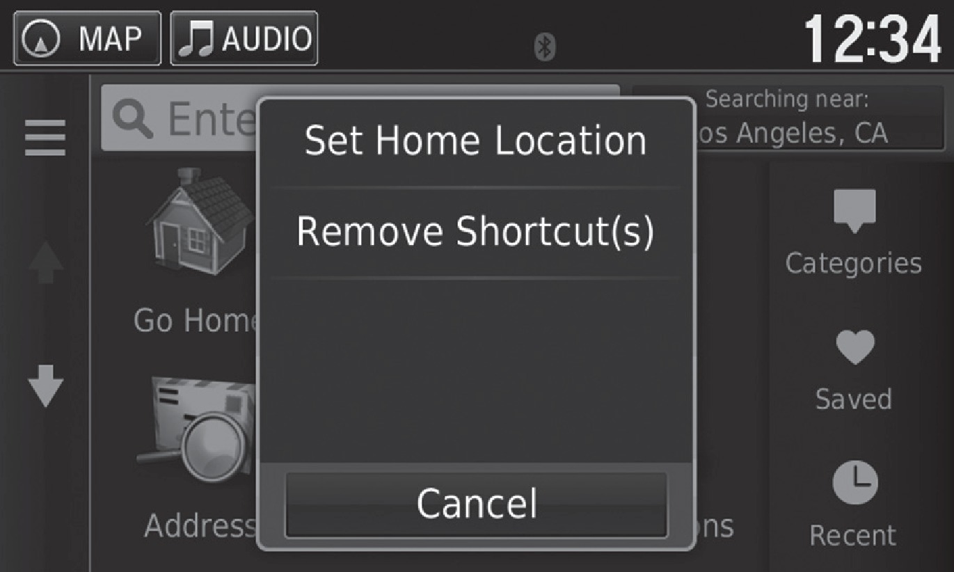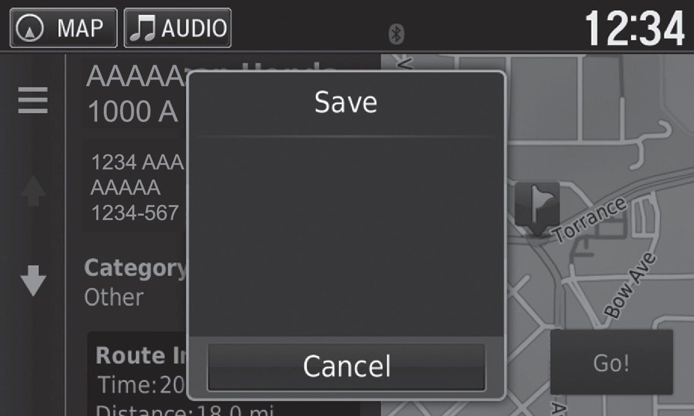 You can also save your current location. From the map screen, select the vehicle icon. Select Save. Enter a name for the location. Select Done. Select OK.