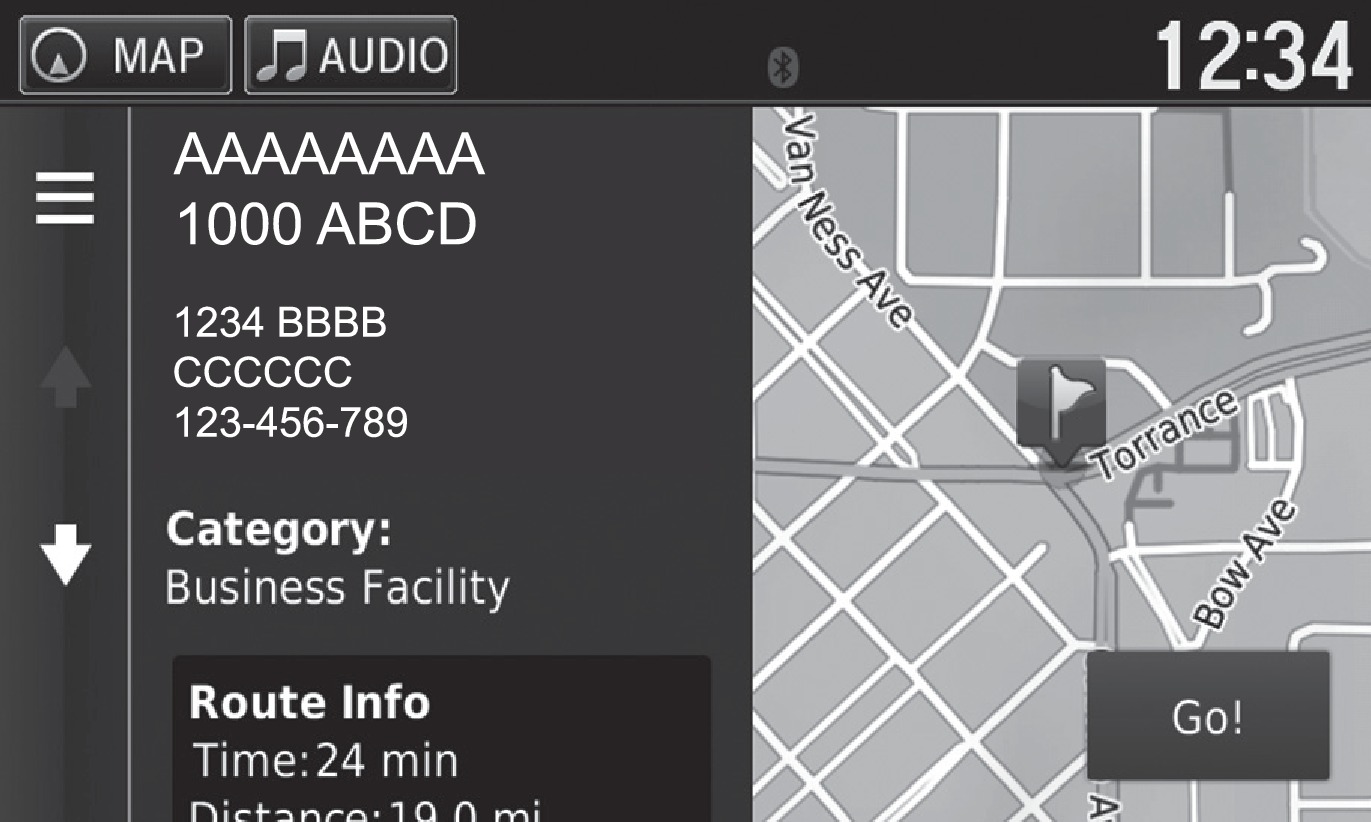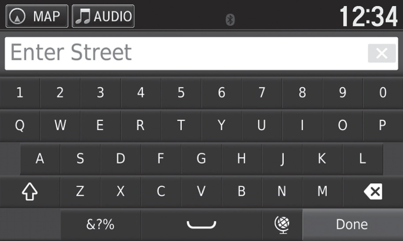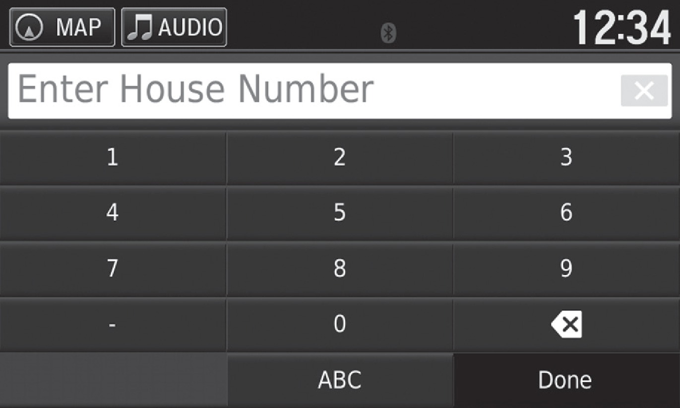 You can also enter a street address using voice commands. Press the Talk button and say "Navigation" and then "Find Place." Follow the prompts.