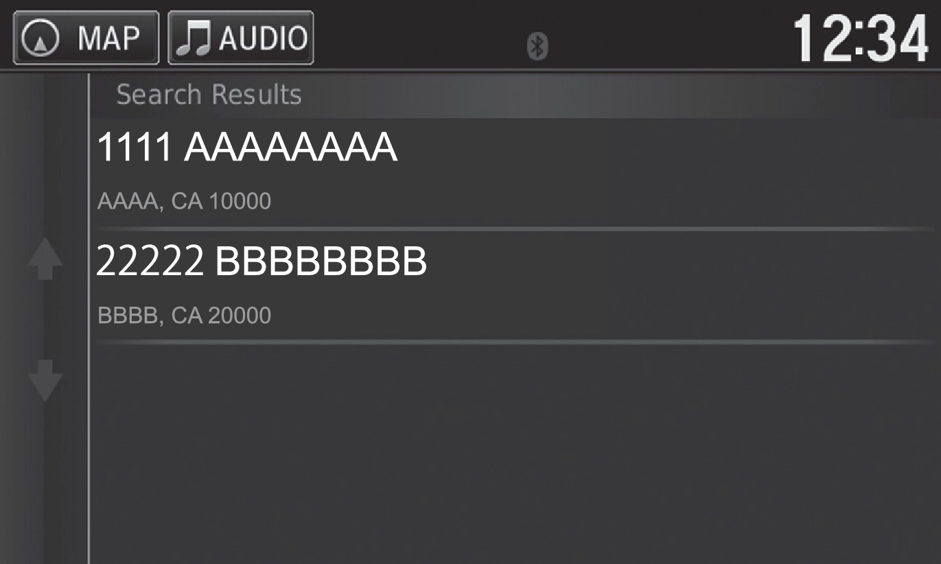 You can also enter a street address using voice commands. Press the Talk button and say "Navigation" and then "Find Address." Follow the prompts.