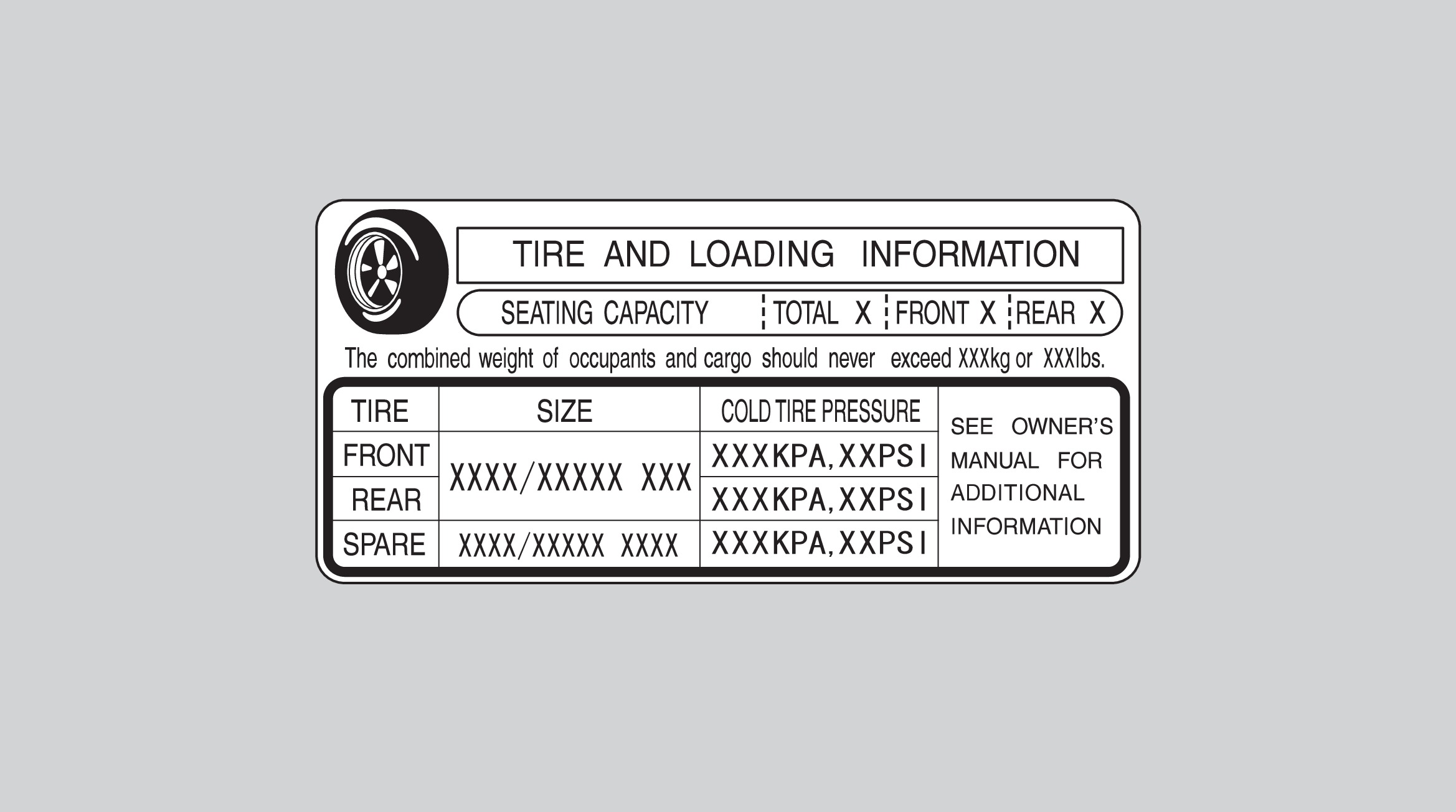 - Locate the statement "The combined weight of occupants and cargo should never exceed XXX kg or XXX lbs." on your vehicle's placard.