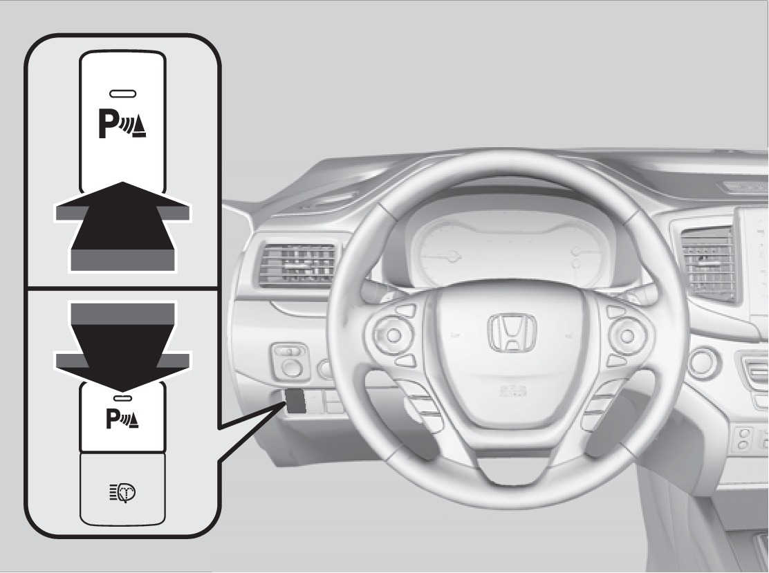 Press the parking sensor button to turn the system on or off. A green indicator light appears on the button when the system is on.