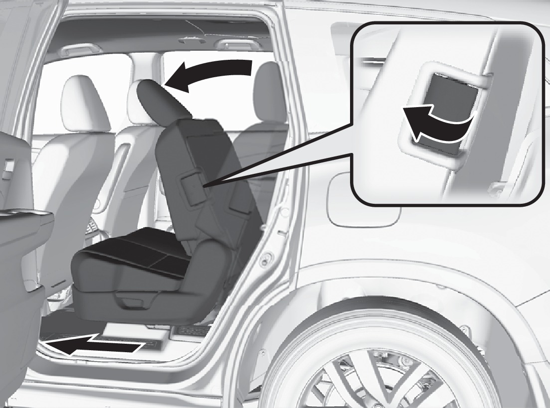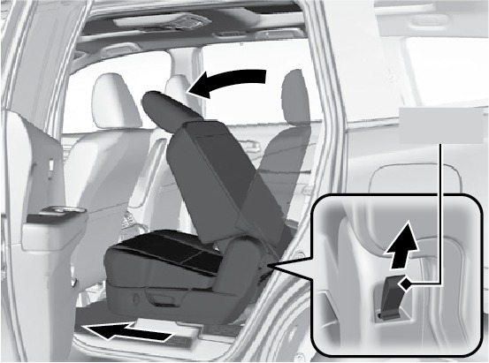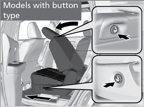 Press the button on the seat-back or seat cushion when the vehicle is stopped. The whole seat slides forward.