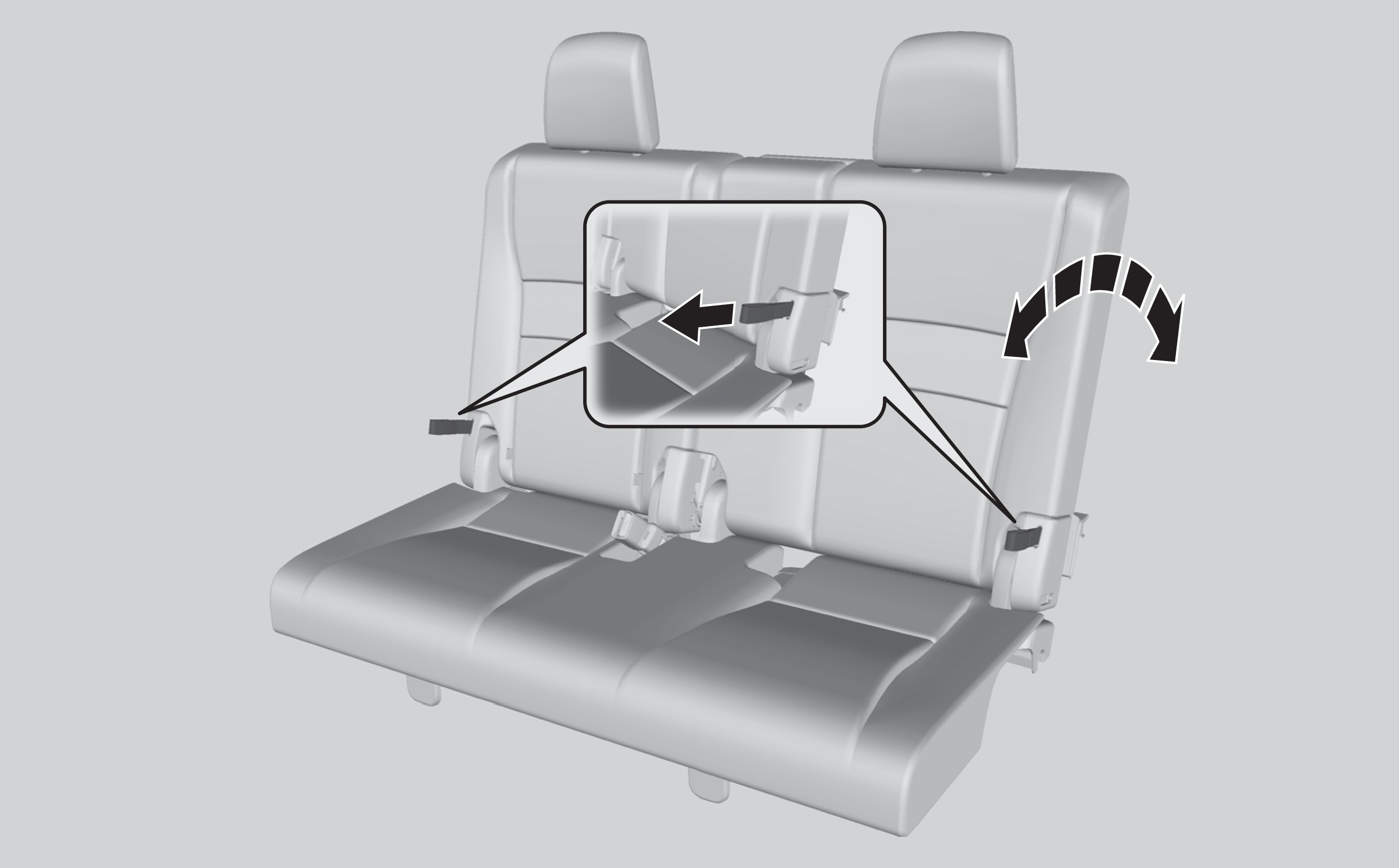 - Lower the center head restraint to its lowest position. Put the armrest back into the seat-back.