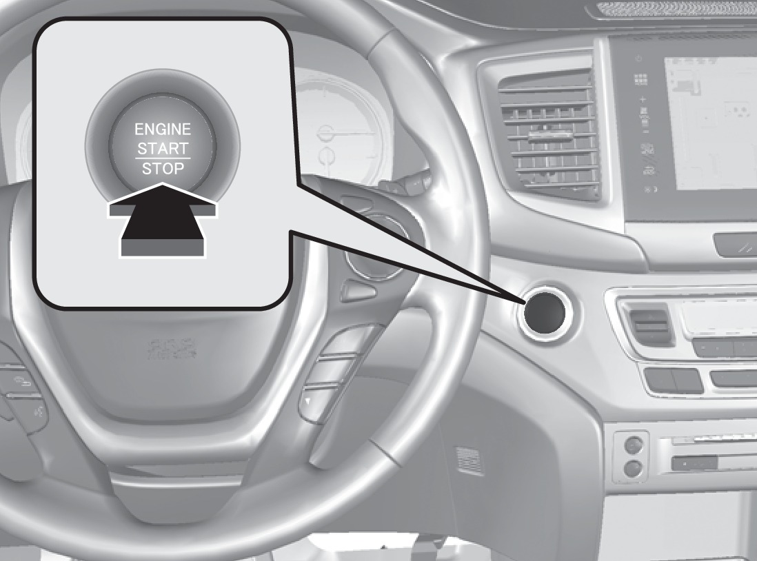 Starting the engine: Press and hold the brake pedal, then press the ENGINE START/STOP button. Keep your foot firmly on the brake pedal when starting the engine. If you press the button and the vehicle is not in Park (P), the vehicle goes into Accessory mode.