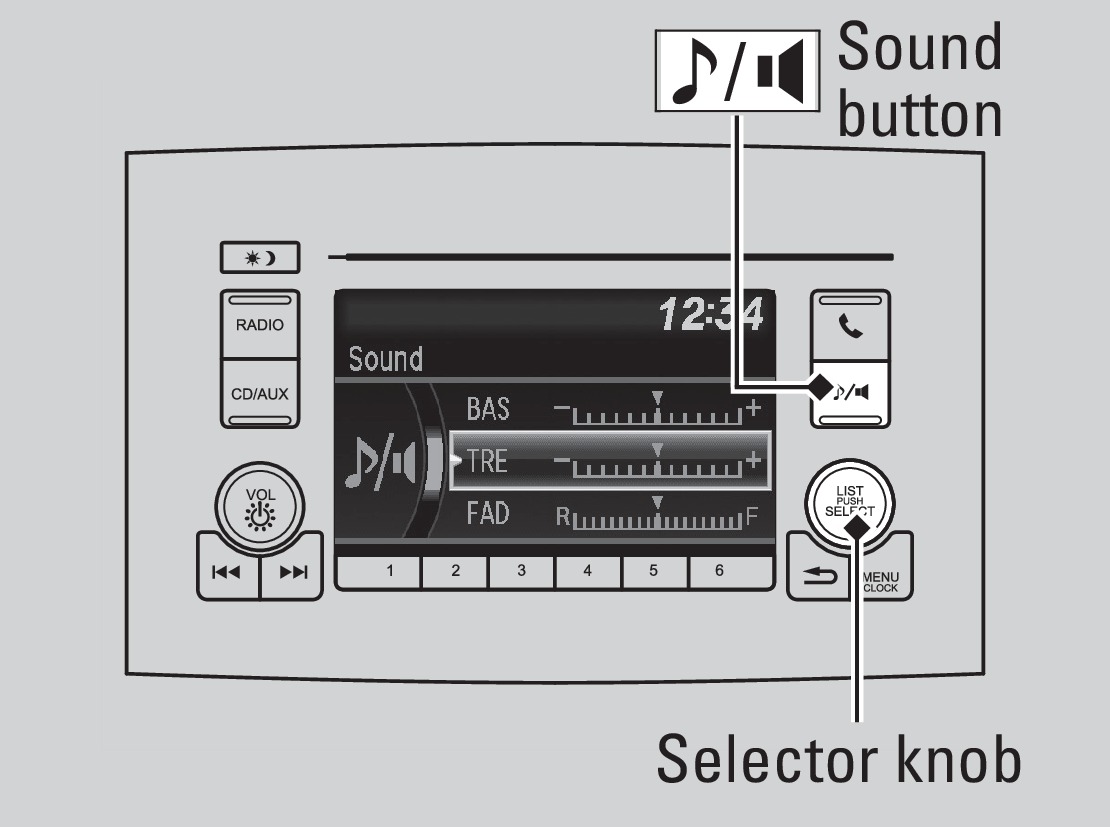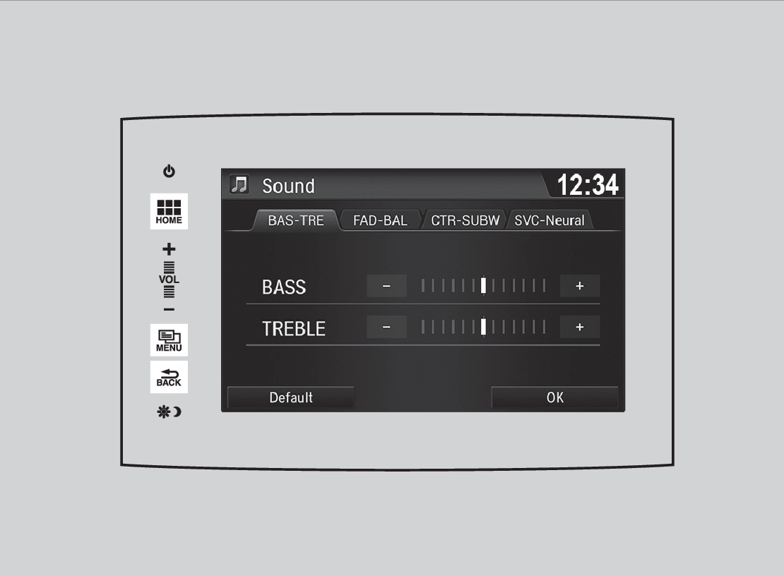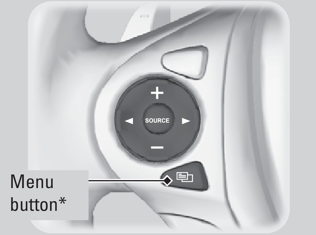 Menu button*: From the audio screen, press to choose options for the current audio mode. Use the +/- buttons and the SOURCE button to scroll and enter selections.