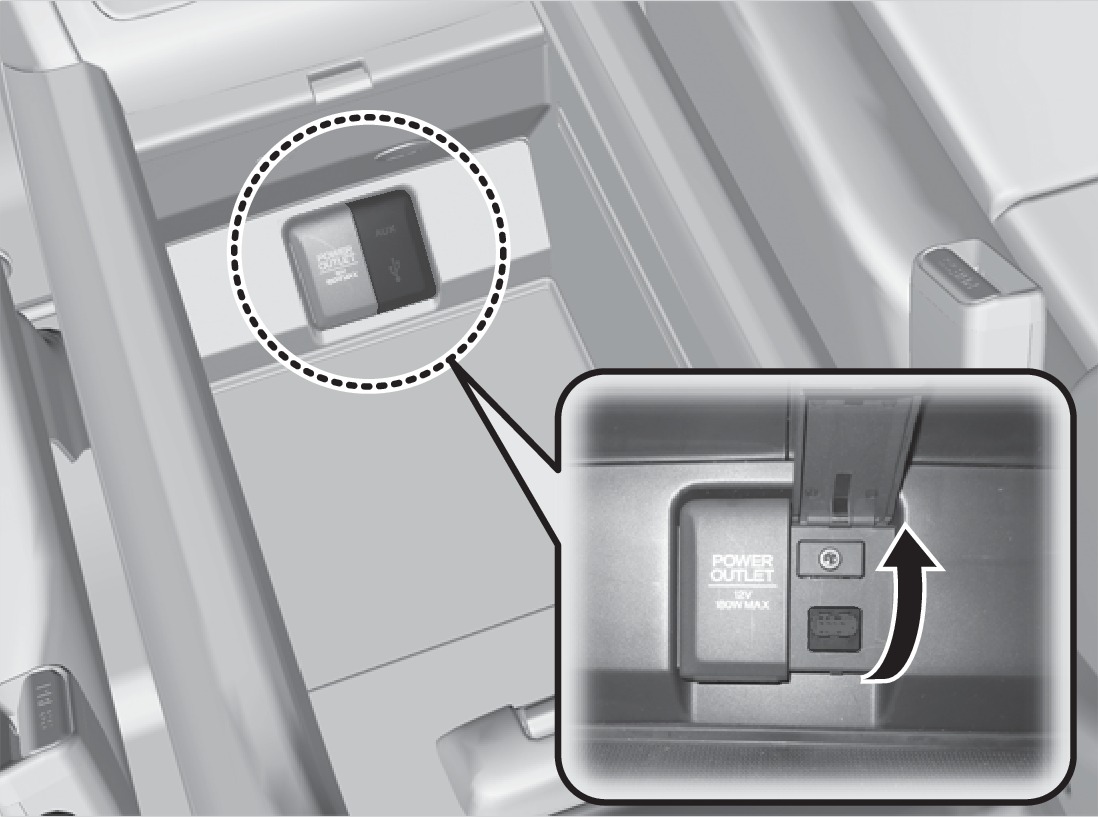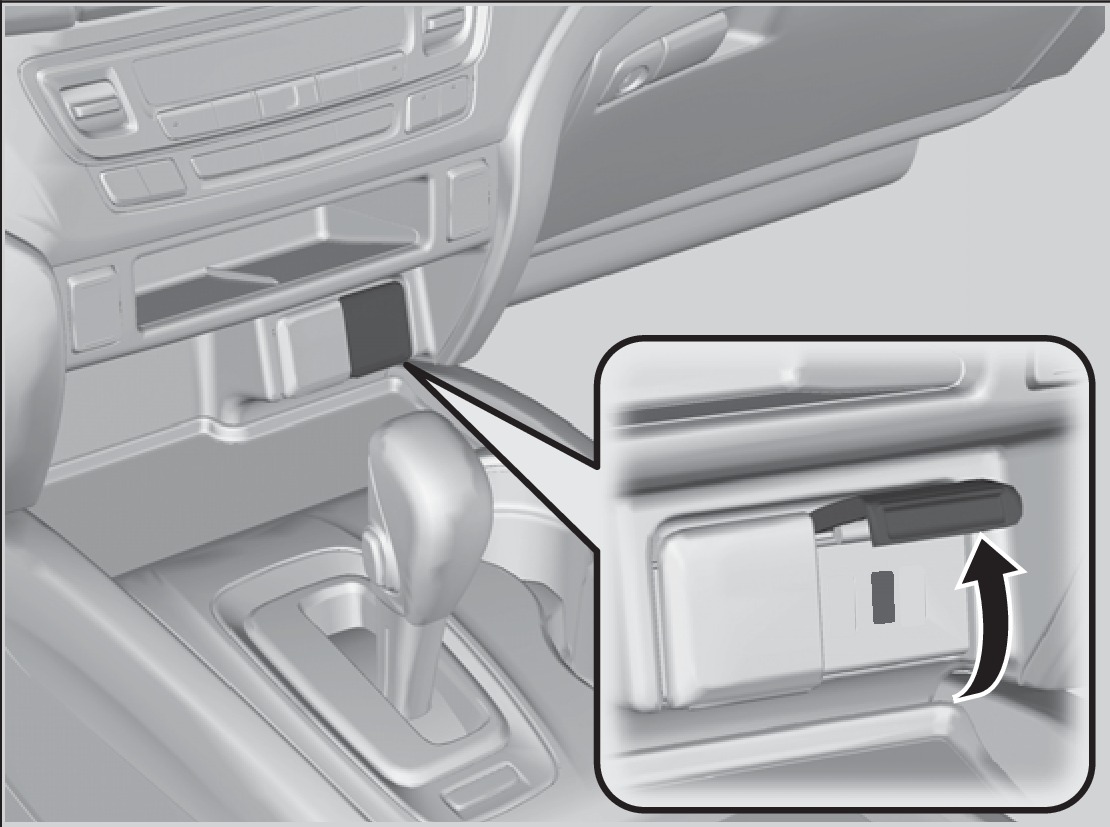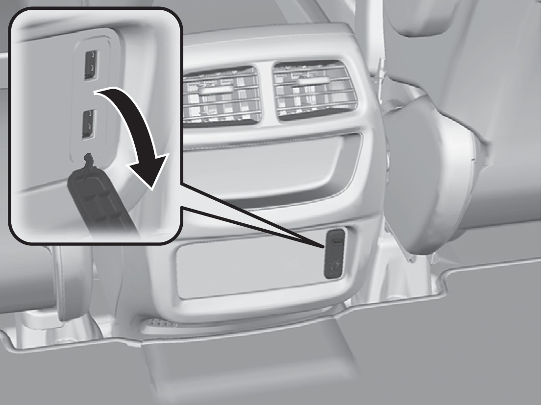 The USB port (1.0A) is located inside the center console and is for playing audio and charging devices.
