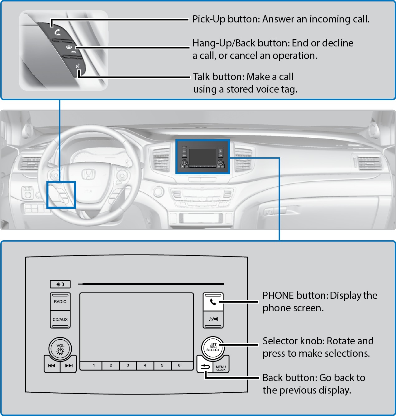 To use hands-free phone and streaming audio functions, you must first pair your phone to the system. This can only be done when the vehicle is stopped. Use the selector knob to make and enter selections.