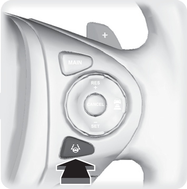 - Press the LKAS button. Lane outlines appear in the MID. Dotted