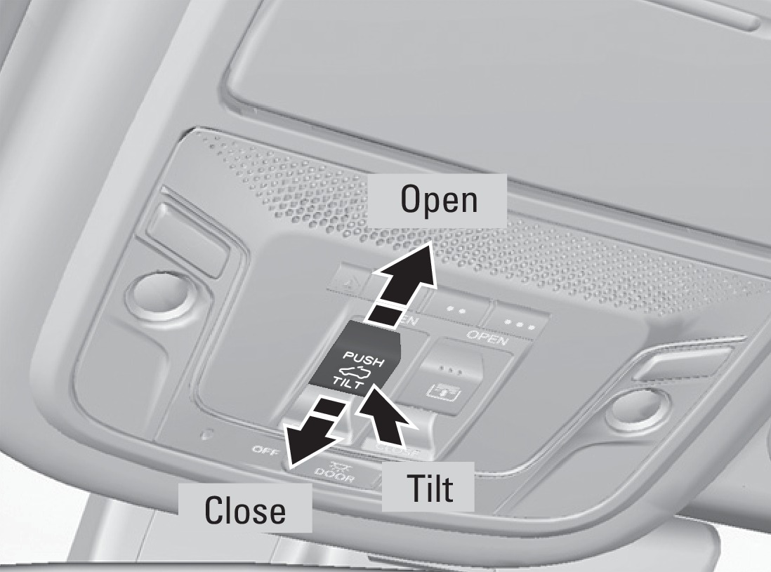 Operation*The moonroof can be opened and closed when the vehicle is on by using the switch on the ceiling.
