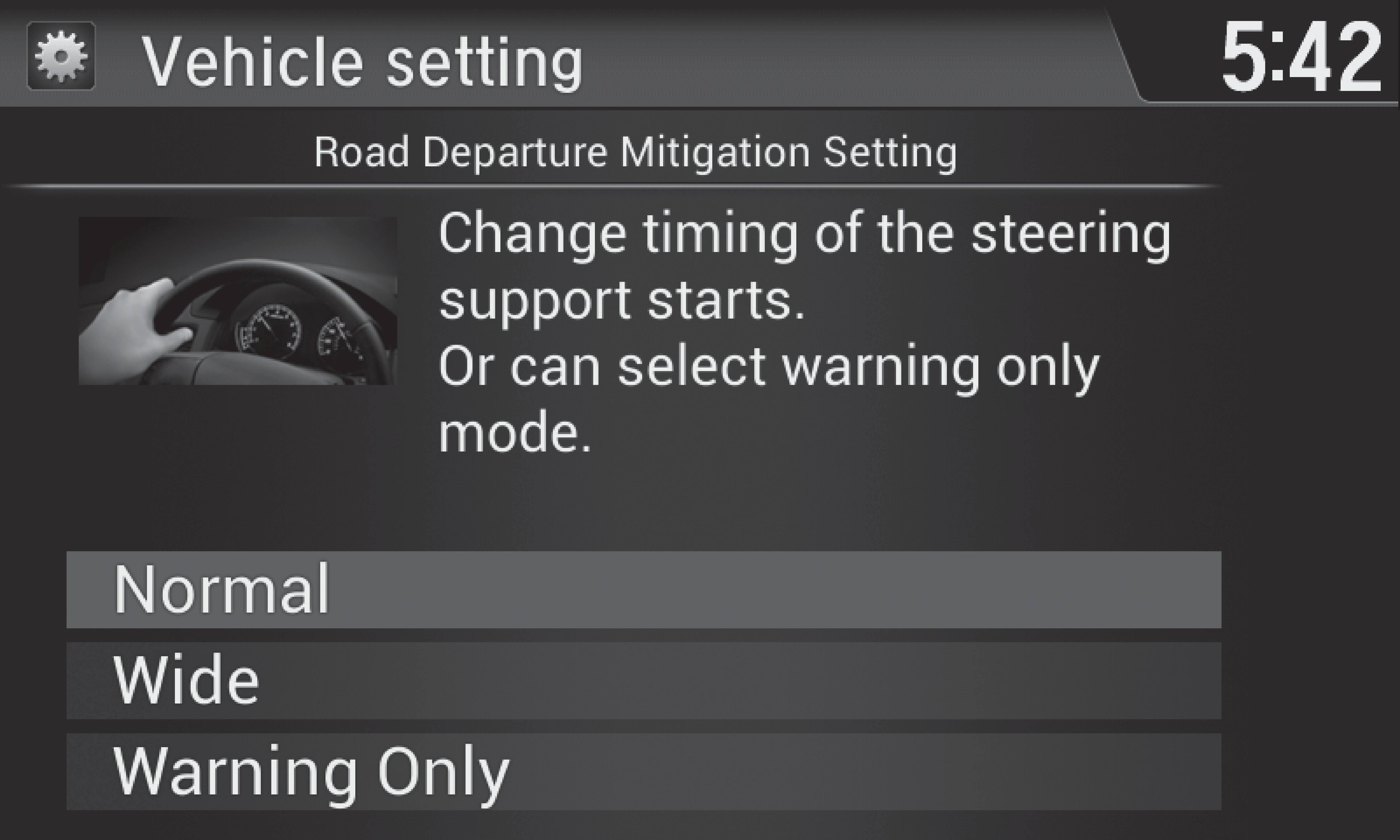 Mitigation (RDM)*Alerts and helps to assist you if the system determines a possibility of your vehicle unintentionally crossing over detected lane markings while driving between 45-90 mph (72-145 km/h).
