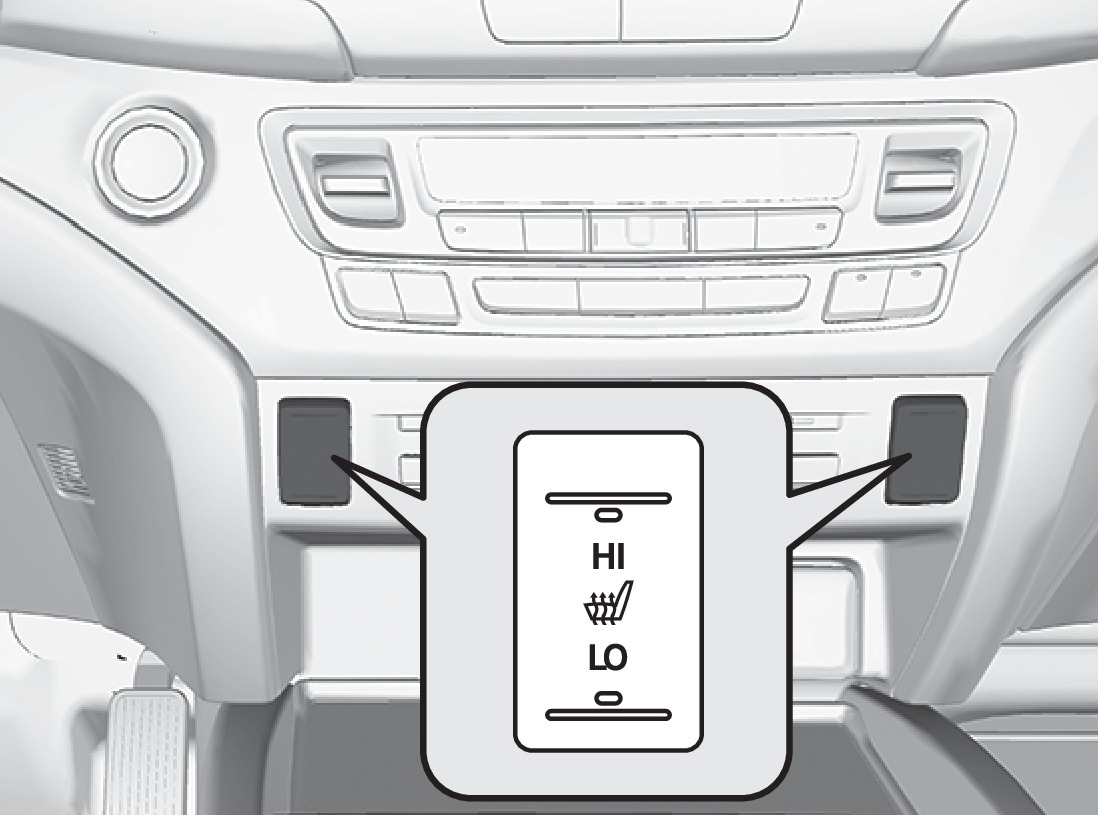 Press the LO or HI side of the switch to activate seat heat. Return the switch to the middle position to cancel seat heat.