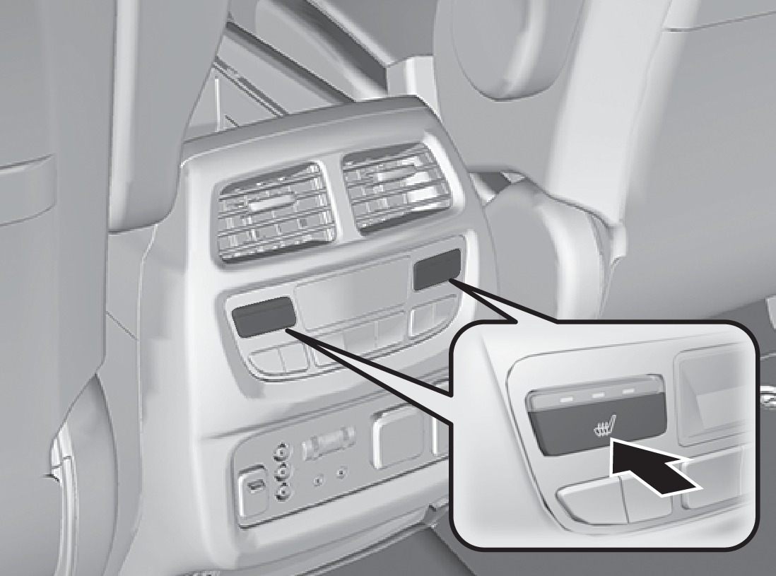 Press the rear seat heater button to cycle through settings. The appropriate indicator appears for each setting.